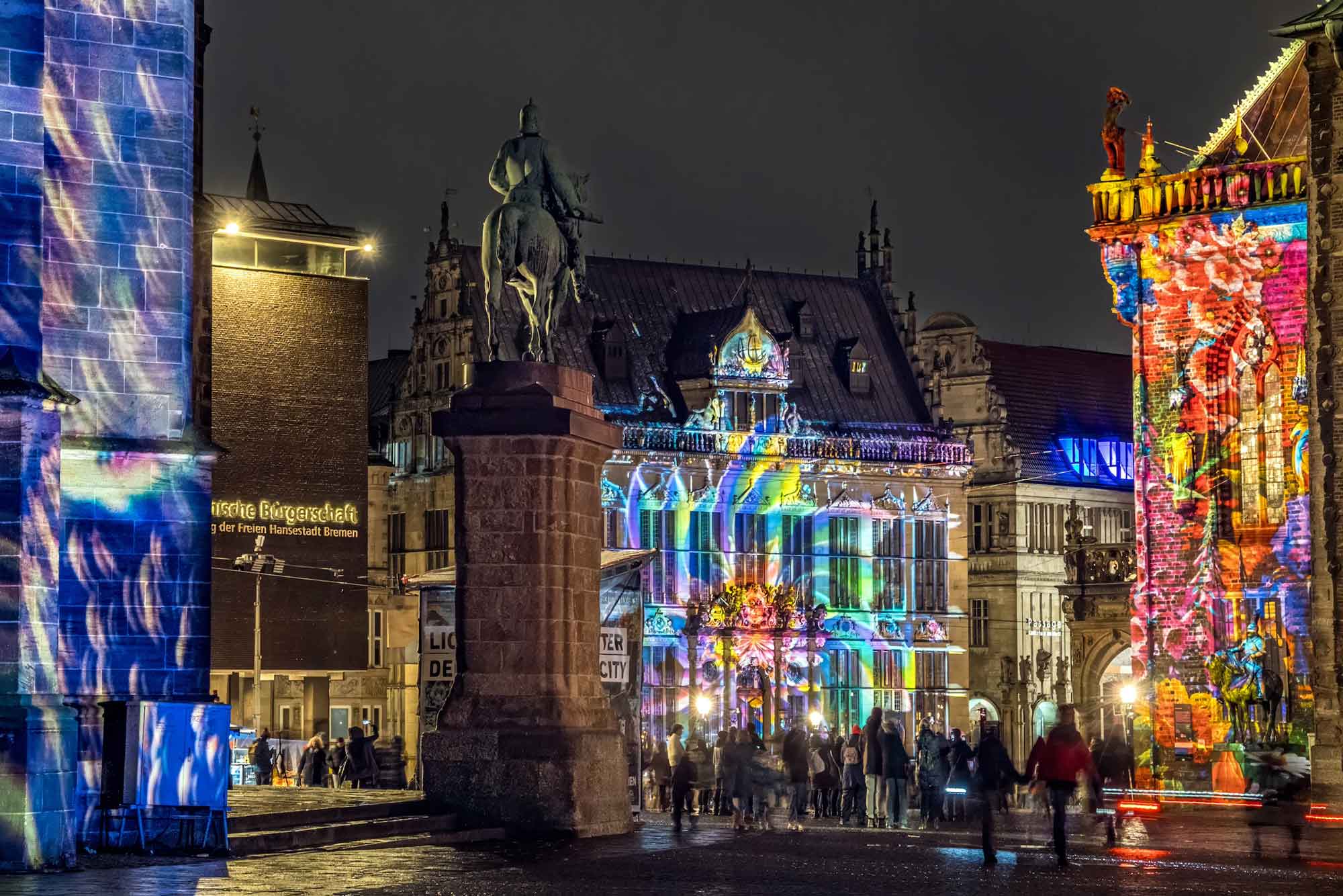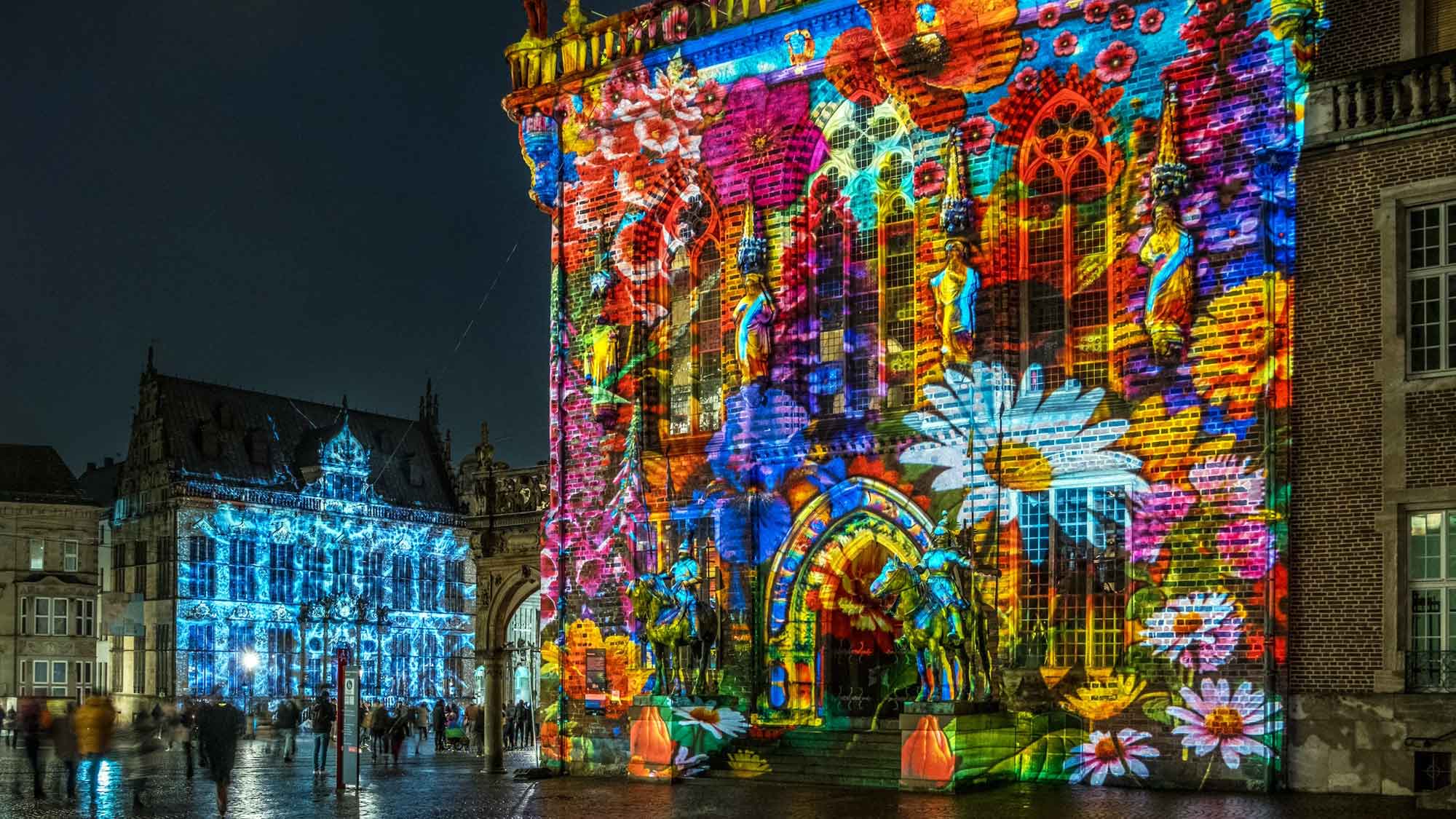 Dieses Jahr fand das Event bereits zum fünften Mal statt und hat sich mit kreativen Konzepten und innovativen Projektionen als ein bedeutendes kulturelles Highlight etabliert. Neben internationalen Lichtkünstlern trugen auch lokale Talente mit einzigartigen Illuminationen am „Made in Bremen“-Haus zu einer unvergesslichen Atmosphäre bei. Ein weiterer Höhepunkt war die 3D-Hologramminstallation „ÆTHER“ am Schoppensteel, die die Besucher in eine völlig neue Dimension entführte. Doch nicht nur die Kunst beeindruckte, auch die historischen Gebäude schufen eine abwechslungsreiche Kulisse.