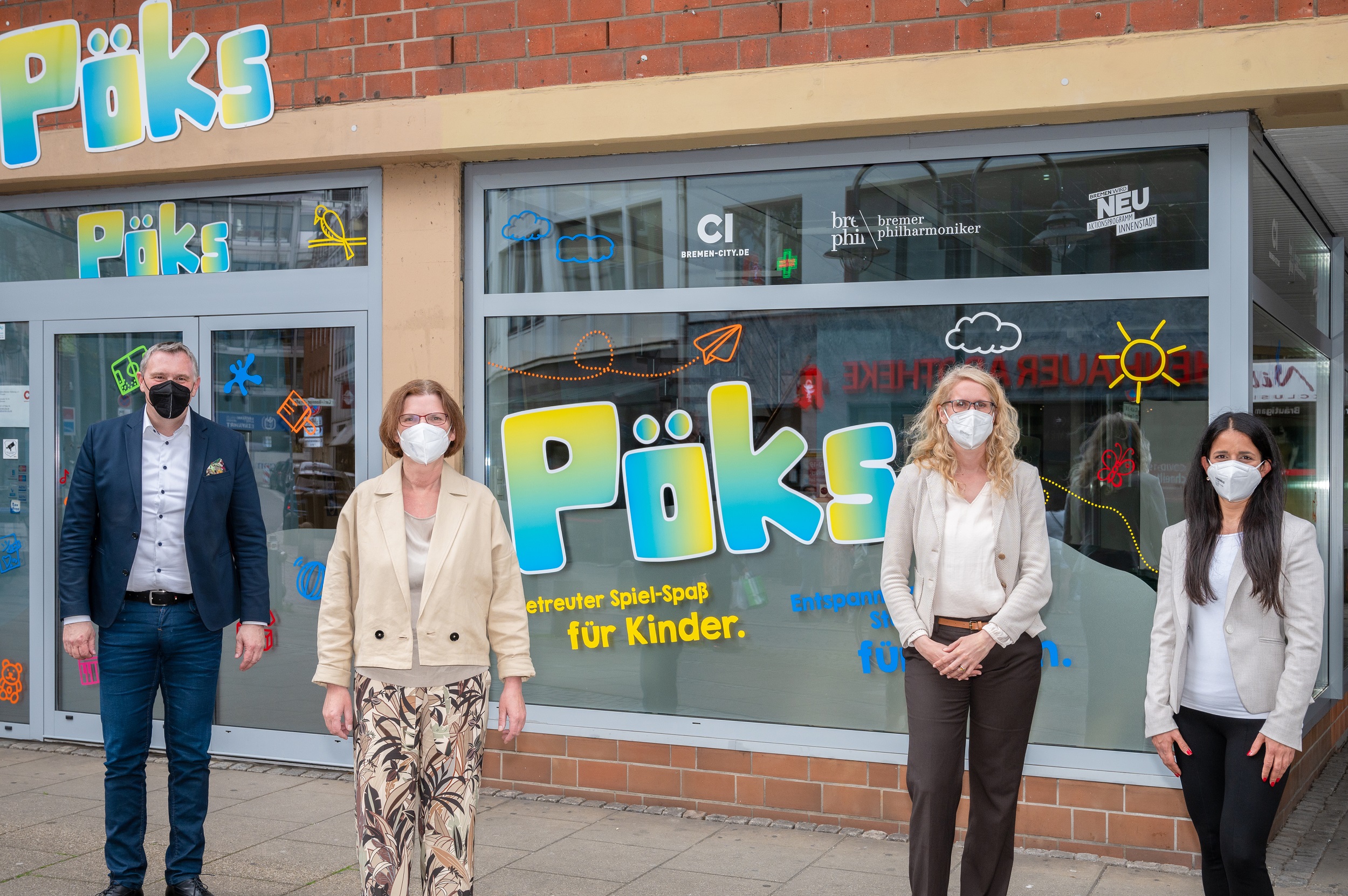 „Pöks“ heißt das neue Kinder-Spielparadies in der Bremer City, das am 02.06.2021 im Rahmen des Aktionsprogramms Innenstadt geöffnet hat. Zunächst als Zwischennutzungskonzept konzipiert, bietet das „Pöks“ mitten in der Bremer City auf über 150 qm eine kostenfreie Kinderbetreuung an. Unter dem Motto „Betreuter Spiel-Spaß für Kinder - Entspanntes Stadt-Erleben für Eltern“ können diese ihre Mädchen und Jungen spielen lassen, während sie selbst noch Besorgungen erledigen oder die neusten Fashiontrends shoppen.