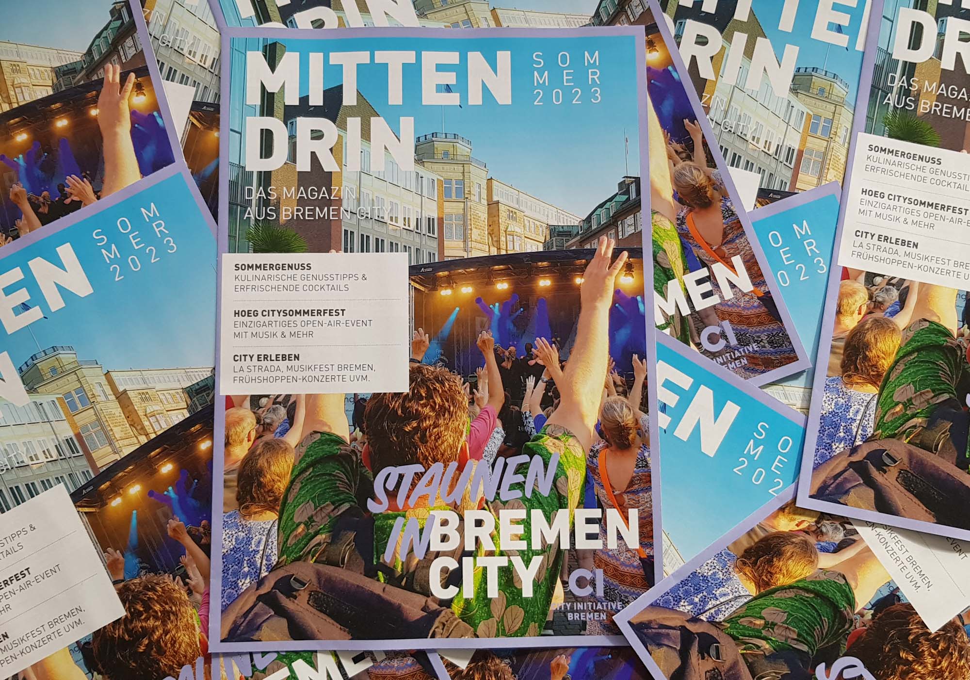 Everything about the summer months in Bremen City. In the Summer 2023 issue of Mittendrin you will find events and shopping tips, but the magazine also reports on awards and anniversaries. Read now about the news from the individual districts: In the middle of summer 2023