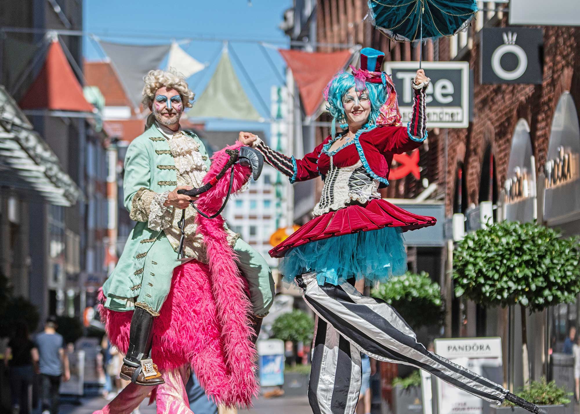 Auf den Wegen Zwischen Innenstadt und Wallwiese bis übers Schnoor, die Böttcherstraße, Fedelhören und das Viertel können Besucherinnen und Besucher flanieren und gleichzeitig das „La Strada“ Festival hautnah erleben.