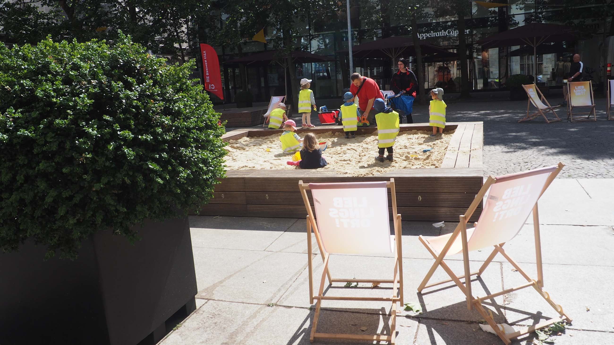 For families with small children there are again the popular sandboxes on the Ansgarikirchhof! While the parents find comfortable space on the spacious wooden edges or the deck chairs, the little ones can dig undisturbed and relaxed.